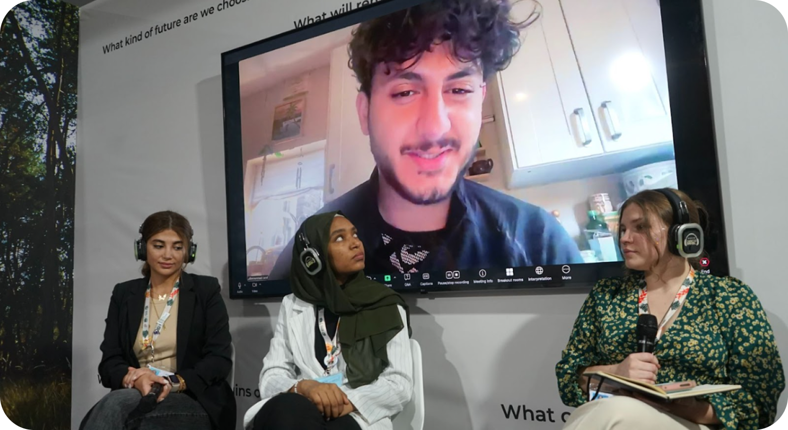 Валерія додала, що бачення відбудови в сенсі трансформації, яка насамперед ставить за мету здоров'я та добробут наших громад завдяки поширенню відновлювальної енергетики та екологічних практик у таких секторах як енергетиці та сільському господарству — це потужне джерело надії навіть під час війни. Мохамед натомість поділився, що його кліматичний активізм також допомагає зберігати пам'ять про страждання його родини та народу через прагнення притягнути воєнних злочинців та їхніх донорів до відповідальності.